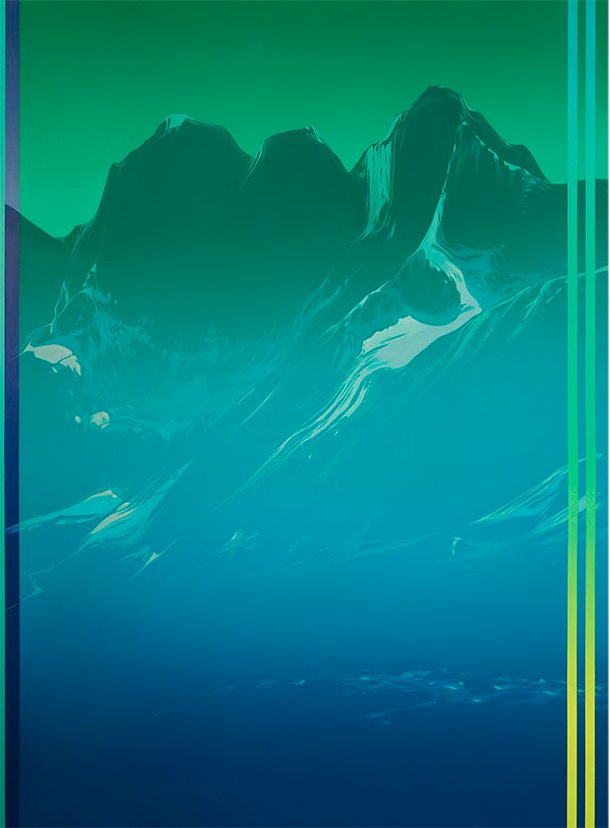 Con 'Glitchland' Julio Sarramián plantea "una lectura poliédrica de fogonazos cromáticos y reflejos impregnados en óleo donde -describe en el dossier de la muestra Adonay Bermúdez- presenta territorios inhóspitos que ya conoce, que ha explorado en sus viajes, intentando acercar al espectador la montaña más enriscada, el valle más escondido y la cumbre más inaccesible".