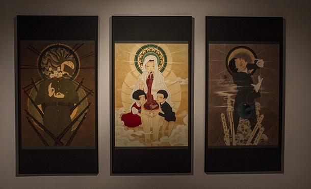 Si la obra de Llaria se muestra a través de una pantalla, la exposición acoge todo tipo de técnicas. Las obras presentadas a la XXXIV edición de la Muestra de Arte Joven de La Rioja abarcan la fotografía en diferentes estilos, la pintura acrílica y al óleo, esculturas de juguetes tradicionales, collage que mezclan el acrílico, el óleo, los rotuladores, el esmalte y el spray, videocreaciones, pintura plástica, esculturas, mosaicos, montajes que entremezclan la imagen y la escultura, instalaciones, collage de sellos -de Franco a Juan Carlos I, a través de una serie de pantones- composiciones de fotografía digital, impresión digital, escritura en latón, escritura con pelo humano sobre seda, dibujos sobre papel hahnemuhle, dibujos de hilo sobre sábanas viejas, esculturas de cera y dibujos digital.