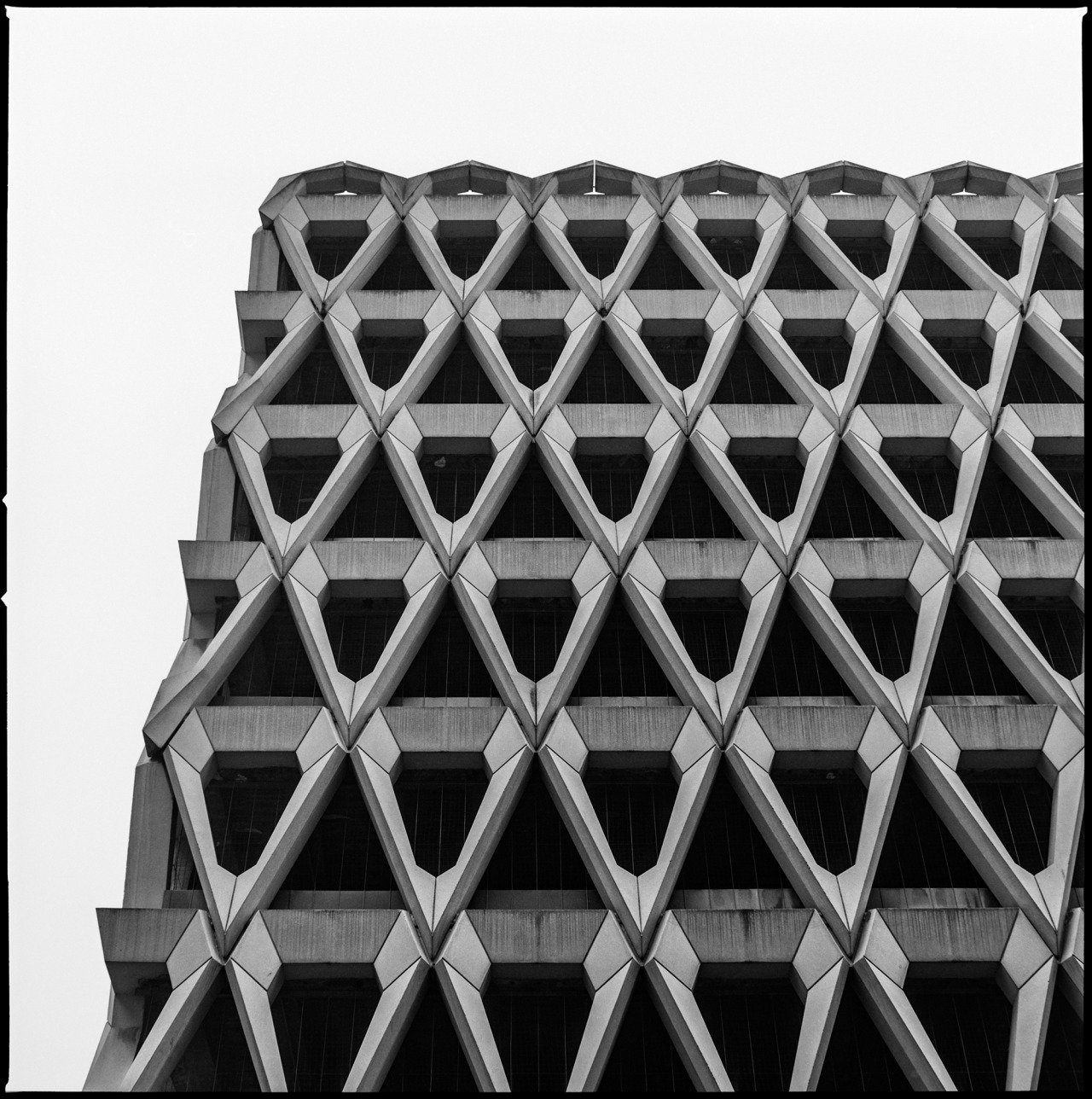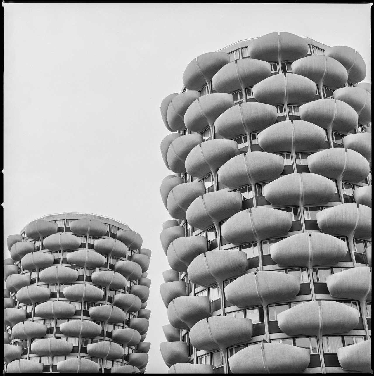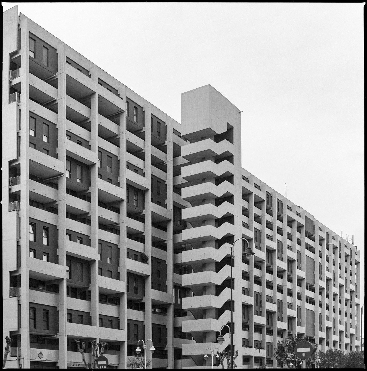 En serie BRUTALISMUS, Carlos Traspaderne retrata edificios brutalistas y modernistas en España, Francia, Reino Unido, Italia, República Checa, Eslovaquia, Croacia, Austria y Luxemburgo, ubicados en ciudades grandes y pequeñas, algunos famosos y otras desconocidos. "Para plasmar estas construcciones en imágenes, he decidido volver, al menos técnicamente, a aquellos años pasados entre los 50 y los 70 cuando se crearon, utilizando una Hasselblad 500 C/M de 1973. Esta cámara es una cámara analógica de formato medio, con todas sus limitaciones. Su precisión óptica y su exigente manejo obligan a reconsiderar las imágenes como monumentos en sí mismas, convirtiéndose en lo que retratan, que es una estilización del propio edificio. La película neutraliza las diferencias de luz y color entre estas construcciones, eliminando los bordes para unificarlas en una nueva visión llamada Modernidad", describe el fotoógrafo logroñés.