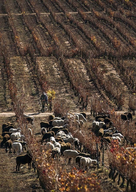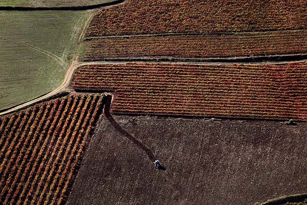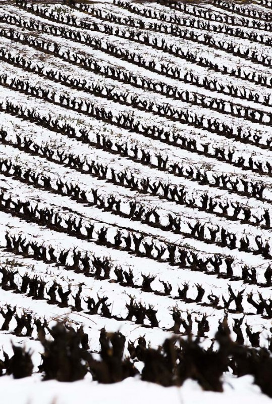 La propuesta abarca todo lo relacionado con el vino. El vino en sí, el viñedo, la bodega, los oficios, las uvas… eché un vistazo a mi archivo, haciendo bastante hincapié en el trabajo que habíamos realizado desde el Estudio JPEG para el Consejo Regulador y algo más que fui añadiendo completé mi serie de imágenes. Me pareció importante reflejar las diferentes estaciones del año. En las fotografías expuestas en Chalon-sur-Saône se perciben las heladas, el otoño y una amplia variedad de luz, desde el ocaso al amanecer. En total son treinta fotografías.