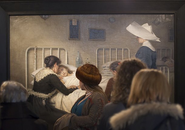 Sí, todo te influye. La exposición que mencionas era sobre la pintura de Paternina. En la fotografía además de oficio hay mucho de casualidad. Creo que se trataba de una visita para la prensa y los voluntarios que participaban en La Rioja Tierra Abierta y había una señora vestida casi de la misma época que la retratada en el cuadro. La vi y la estuve siguiendo hasta que estuvo ante el cuadro. La fotografía tiene mucho de técnica, pero también se conjuga con la casualidad.