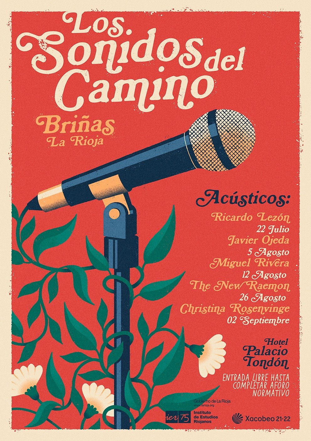 El Instituto de Estudios Riojanos (IER) conmemora el Xacobeo 2021, entre otras actividades, con la celebración del ciclo 'Los Sonidos del Camino' que trasladará a la localidad riojana de Briñas la música de Christina Rosenvinge, Javier Ojerda, The New Raemon, Miguel Rivera y Ricardo Lezón. Los conciertos tendrá lugar los días 22 de julio, 5, 12 y 26 de agosto, y 2 de septiembre, en el Hotel Palacio Tondón, con entrada libre hasta completar aforo, que marque las normas anti covid.