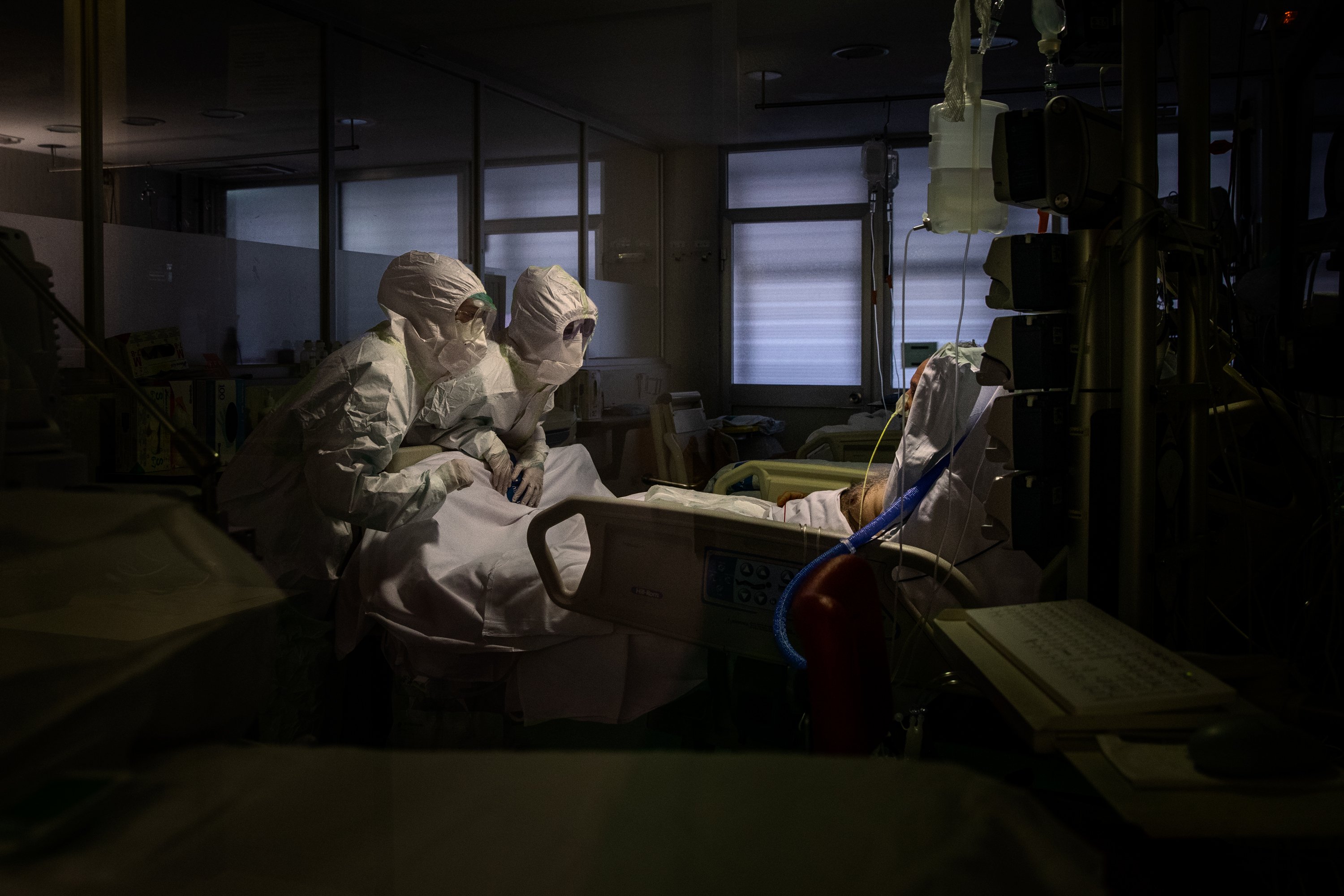 La sección Urgencia recoge imágenes de aquellos protagonistas que combatieron en primera línea. Profesionales sanitarios, militares, etc, son algunos de los protagonistas de estas imágenes que son “fragmentos de un momento histórico que ha sido embestido para hacernos entender que no todo es tiempo presente, sino tiempo inminente. Nos hemos transformado en la manifestación del tiempo, en su despliegue, en su medida".