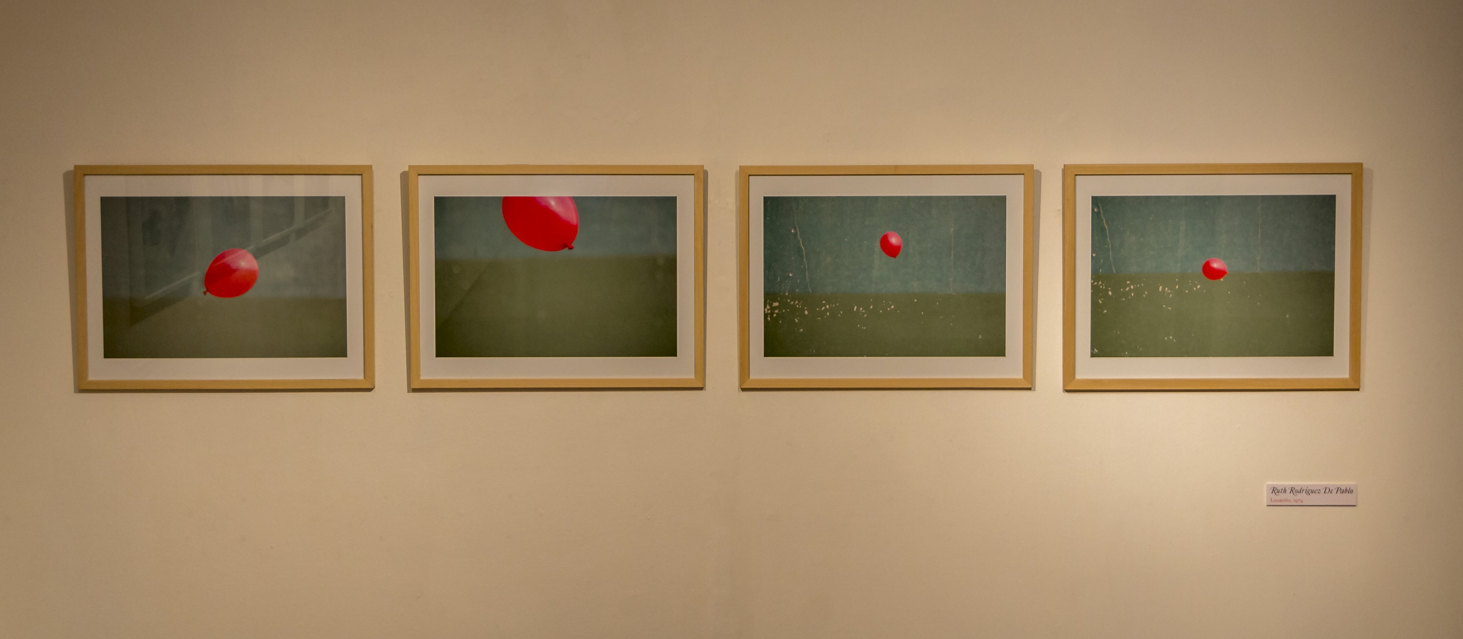 De frente, al acceder a la sala de exposiciones, atrae la mirada el ritmo de la serie fotográfica de Ruth Rodríguez de Pablo. Son cuatro fotografías: un frontón como escenario y un globo rojo que baila sobre el verde de fondo. “Quería -explica Ruth- crear un poema visual. Sabemos que lo bello y lo bonito son cosas muy obvias, pero en los pequeños detalles de la vida también encontramos cosas bonitas y bellas. Creo que las ocho fotógrafas que participamos en ‘Poéticas’ tenemos en común esa cierta sensibilidad”. Resalta Rodríguez de Pablo que en el día a día tiene muy presente los juegos infantiles al tener un niño pequeño. “Me gusta fotografiar las cosas sutiles, y efímeras, como un suspiro. Al contemplar las imágenes comprobamos que existía un ritmo, que el globo simulaba una nota viajando por un pentagrama; había música en la serie de fotografías”.