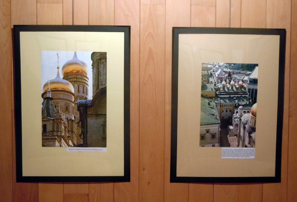 El metro de Moscú es un museo. Las cerca de sesenta fotografías que componen ‘Moscú en imágenes’ muestras los edificios y lugares más emblemáticos de la capital rusa. La plaza Roja, el Kremlin o el teatro Bolshoi aparecen retratados en la colección de imágenes, pero quizá sea el metro, en su condición de medio de transporte y subterránea y lineal sala de exposiciones, lo más sorprendente de la muestra.