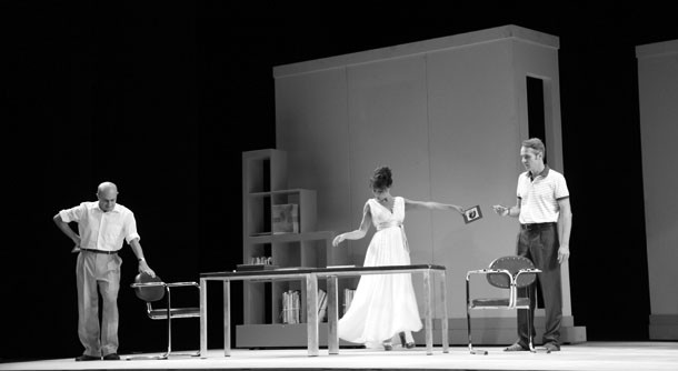 El ensayo continúa. Sobre el escenario saltan las escenas y Pepe, Susana y Carles comentan y sonríen a cada parón. Quizá sea esa complicidad con Neville de la que hablaba Bernardo. Ese espíritu de una obra, ‘El Baile’, que fue uno de los hitos populares del teatro español de mediados del siglo XX. Una historia que aún hoy es una fábula moderna sobre el curso y el concurso del tiempo en el amor. Una historia de tres amigos… más que amigos./Javi Muro