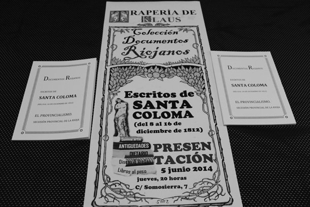 ‘Los Escritos de Santa Coloma de 1812’ recoge los primeros textos hallados en los que se manifiesta la intención de secesión provincialista de La Rioja. Aprovechando la cercanía del Día de La Rioja –próximo 9 de junio- TraperíaDeKlaus, librería anticuario, ha decidido editar una serie de documentos riojanos, cuya primera entrega es el libro que reúne los documentos más relevantes en cuanto a lo acontecido en la localidad de Santa Coloma en diciembre de 1812.