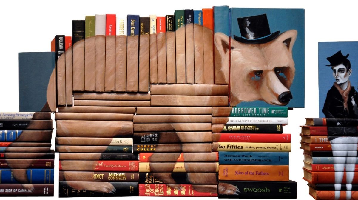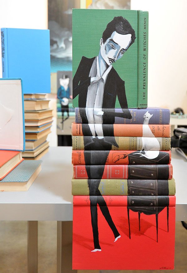 Mike Stilkey es el artista que pinta en los libros. No sólo en su interior -que también, aunque no sea lo habitual-, sino que encuentra en el lomo de los volúmenes impresos el mejor de los lienzos. Stilkey nació en Los Ángeles (USA) en 1975 y a lo largo de su carrera ha sido reconocido por sus dibujas y pinturas sobre libros. Cuenta que desde niño sintió la atracción de las pinturas y los lápices de colores, pero fue un tiempo después cuando comenzó a desarrollar la técnica a través de la cual ha desarrollado un estilo propio.