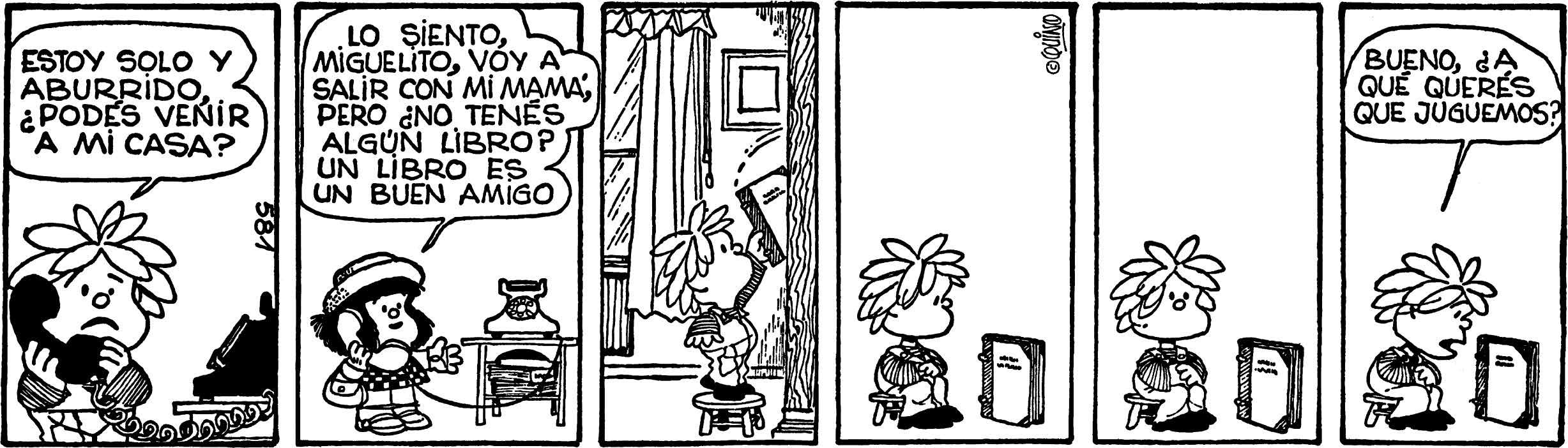 "El amor es Mafalda interesándose por la paz, el progreso y el conocimiento. Es Felipe refugiándose en las historietas, o fingiendo que con el disfraz del Llanero Solitario podrá resolver todos sus miedos. Es Manolito cuando acaricia la hucha en la que se esconden sus monedas, pero también sus sueños de futuro. Adivinar qué es el amor, la ternura y la amistad a través de una pequeña filósofa como lo es Mafalda se ha convertido casi en un acto de urgencia".