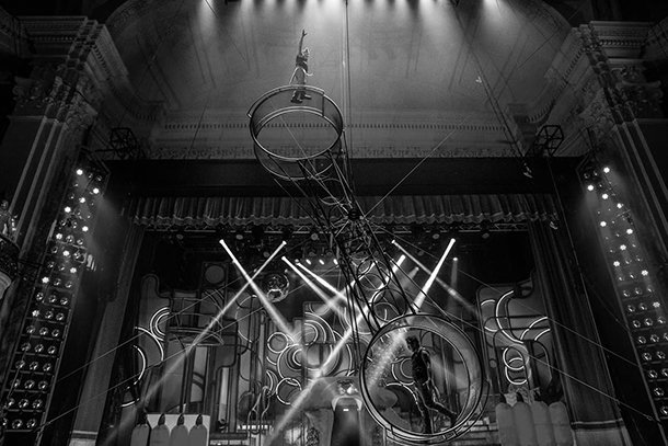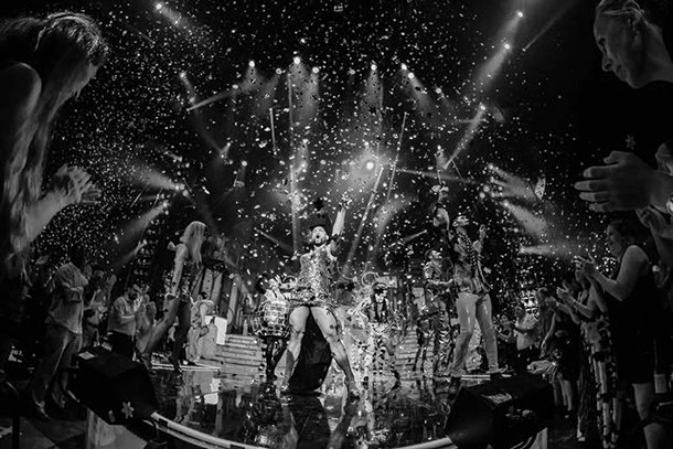En esta ocasión el show mezcla el circo, cabaret, música y mucho humor, con la cultura de club, “de una forma diferente a los espectáculos anteriores. Proponemos una auténtica fiesta en la que todos participamos, manteniendo el insuperable nivel de sus números musicales y en la calidad de los artistas, con la música como elemento indispensable dentro del show, con canalleo, un punto sexy, diversión, y un importante factor sorpresa. Llevamos entrando en el agujero desde 2011 y ya va siendo hora de desvelar cómo se abrió. ‘The Hole Zero’ es la oportunidad de descubrirlo”. El Maestro de Ceremonias, La Diva -lo mismo canta bajo ‘Purple Rain’ que cuenta ‘She loves to dance’-, ‘La Conciencia’ -presente aunque los MCs aconsejan dejarla en casa al salir de fiesta-, ‘El percusionista’, ‘Lucy’, ‘DJ Santera’, ‘Bola Disco’, ‘Dios Caballo’ -homenaje al ‘momentazo’ en que Bianca Jagger entró en Studio 54 a lomos de un blanco corcel (*)-, Golden Boy, Lady 54, o Lady Studio, son algunos de los personajes que revivirán la mítica nochevieja del 79. /Javi Muro.