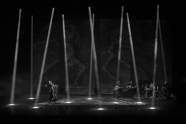 28 de octubre. Lo último de Sara Baras es ‘Sombras’, un espectáculo creado con motivo del vigésimo aniversario del Ballet Flamenco Sara Baras y cuyo hilo conductor es 'La Farruca', un baile que ha acompañado a la bailaora durante estos 20 años de trayectoria. En ‘Sombras’, se conjuga el virtuosismo de su baile con impactantes coreografías; lo tradicional y lo moderno con un juego de recursos técnicos en los que la escenografía, que está firmada por el genial pintor-garabatista malagueño Andrés Mérida, juega un papel importantísimo, aportando color, texturas y una nueva distribución del espacio escénico. Está complementado por un extraordinario diseño de luces y un maravilloso vestuario, concebidos para obrar al servicio del espectáculo.