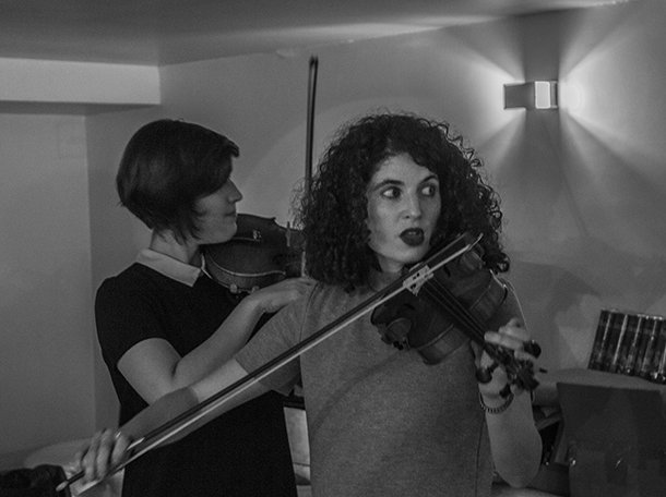Junto a la puerta de acceso ha cobrado forma el puesto de ‘merchandising’. Todos han ayudado ha ordenar camisetas, sudaderas, tazas y CD`s. Sobre el escenario las guitarras y el bajo de Messura suenan poderosos. Prueban y prueban, más alto, más bajo, afinan retornos, “ahora sí”, confirman; se unen 'Ellas’, el trío de violines y chelo’ que forman Marta, Irene y Sara. Entre los siete ajustan el sonido al gusto de todos. Todo un jeroglífico de percepciones. Lleva un rato, pero lo consiguen. Virtuosos de la música que tocan mientras disfrutan de cervezas, cocacolas y aguas minerales. Los focos queman y es necesario hidratarse.