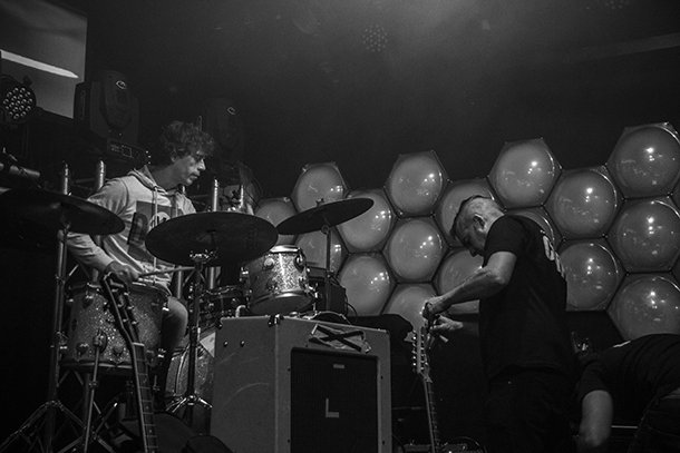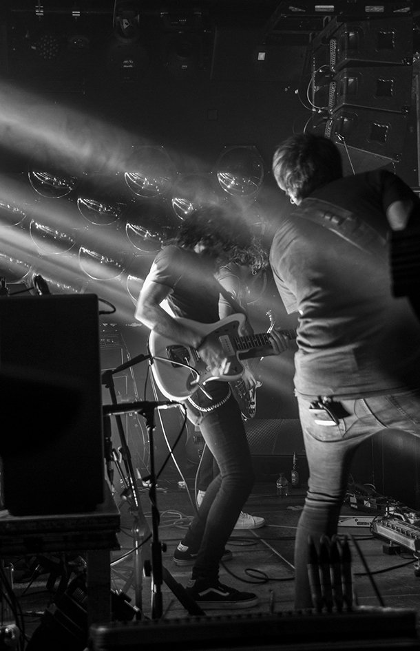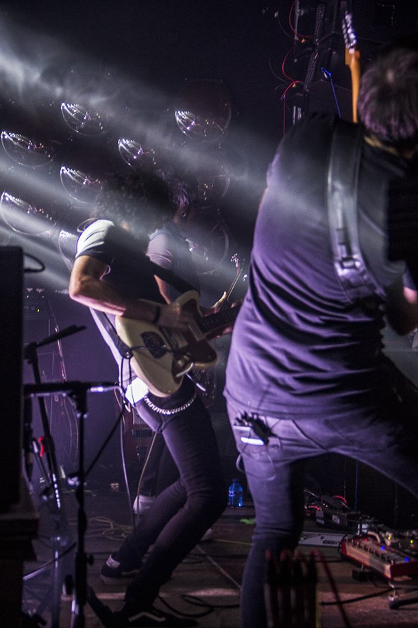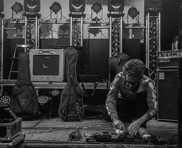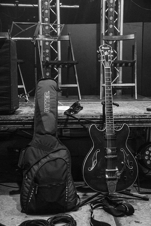 La colección de guitarras es mayor que en bolos anteriores. Reposan sobre el escenario al regresar a la sala a primera hora de la tarde. Por primera vez, Messura empleará en directo guitarras afinadas específicamente para cada tema. Mientras, Joselu ya reina con las baquetas en las manos. "El ajuste del sonido de la batería es esencial", explican los técnicos de del concierto. Desde lo alto del escenario, Joselu levanta la mano y hace el signo de OK. Desde uno de los mini reservados laterales el técnico se lo devuelve. Es el turno de Diego, Germán y David.