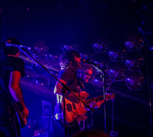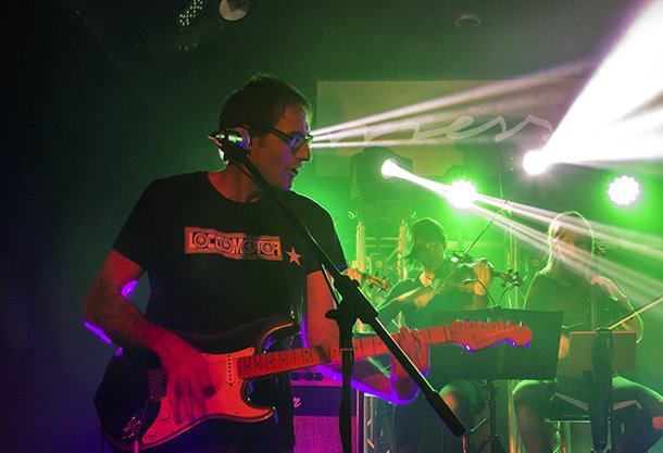 Las guitarras comienzan a rugir poderosas. Ametralladoras de acordes infinitos; son las únicas ametralladoras buenas. Diego camina por la sala, observa, escucha, aplaude -se anima a sí mismo- sube y baja del escenario. German gira una y otra vez sobre sí mismo -alrededor de mil veces-; Joselu sonríe. Todo marcha bien. David no descansa comprueba en el portátil los últimos ajustes; se cuelga la guitarra y asciende al escenario. Rasga las cuerdas y ejecuta una nueva serie de acordes, no se cansa de comprobar un y mil veces más. Está pendiente de todo. David Burgui transmite la sensación de disfrutar; de encontrarse donde siempre quiso estar. Recorre el escenario de punta a punta sin disimular una sonrisa de felicidad.