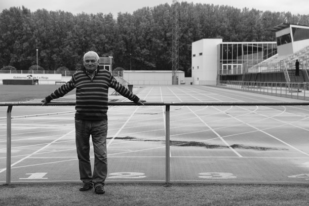 El tartán de la pista de Atletismo del Adarraga está empapado. Son las nueve y media de la mañana y sobre Logroño ha caído una tromba de agua espectacular. A un lado, entre la valla que delimita el acceso a la calle Uno y la entrada a los vestuarios un grupo de personas conversa en corro. Tres atletas, el responsable del mantenimiento de las pistas y el protagonista –el centro de la conversación-, José Luis Álvarez, el entrenador que lleva toda una vida entre el anillo atlético y el frontón de pelota. José Luis cuenta anécdotas de días de entreno bajo la lluvia, motiva a las dos chicas y al chico que en unos minutos comenzarán su entrenamiento bajo un cielo que no tiene pinta de dar tregua.