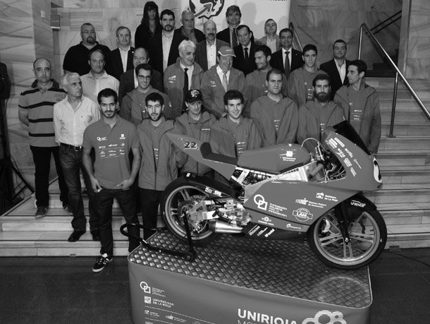 El equipo UniRioja-MotoStudent está formado por los profesores Alberto Falces y Javier Rico -del Departamento de Ingeniería Eléctrica- y Manuel Mendivil Giro -del Departamento de Ingeniería Mecánica-, y los estudiantes Rubén Ubis Soriano, Raúl Díez Ricondo, Enrique Rubio Aguado, Daniel Olano Lerena, Carlos Fuentes Rica, José Juanes Rodríguez, Ignacio Fernández Estébanez, Alberto Chavarri Hernando y Eduardo Martínez.