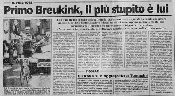 Los ciclistas llegaban temblando a Bormio, algunos lloraban, otros continuaban pedaleando medio inconscientes. La Gazzeta dello Sport tituló su crónica en portada “El día que los hombres lloraron”; dentro, en las páginas interiores: “Primero Breukink, el más estúpido de todos”, mientras comparaba lo vivido aquel cinco de junio de 1988 con la mítica etapa que finalizó en el monte Bondone en 1956 –en la que más de la mitad del pelotón tuvo que retirarse– y que trasladó al Olimpo a su vencedor, el francés Charly Gaul.
