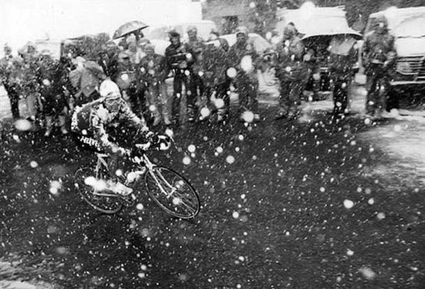 Los corredores encontraron la carretera nevada, el cielo escupiendo nieve sin piedad y una temperatura de cinco grados bajo cero en la cima del Gavia. Una etapa que sin climatología adversa podía haber sido tan solo una más pasó a engrosar el exclusivo libro de los momentos de leyenda del ciclismo.