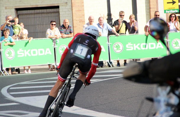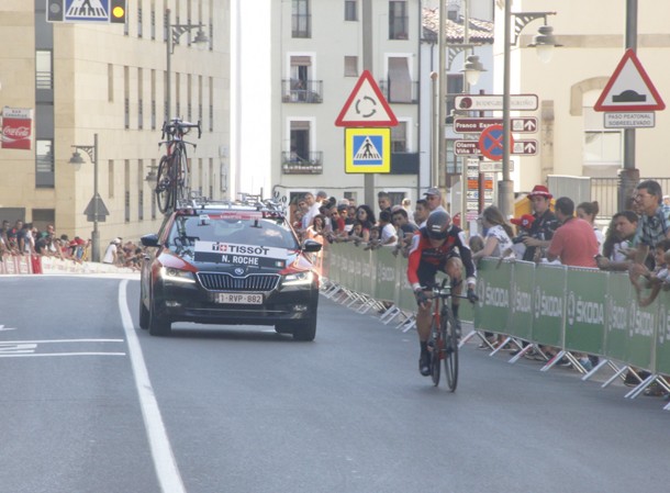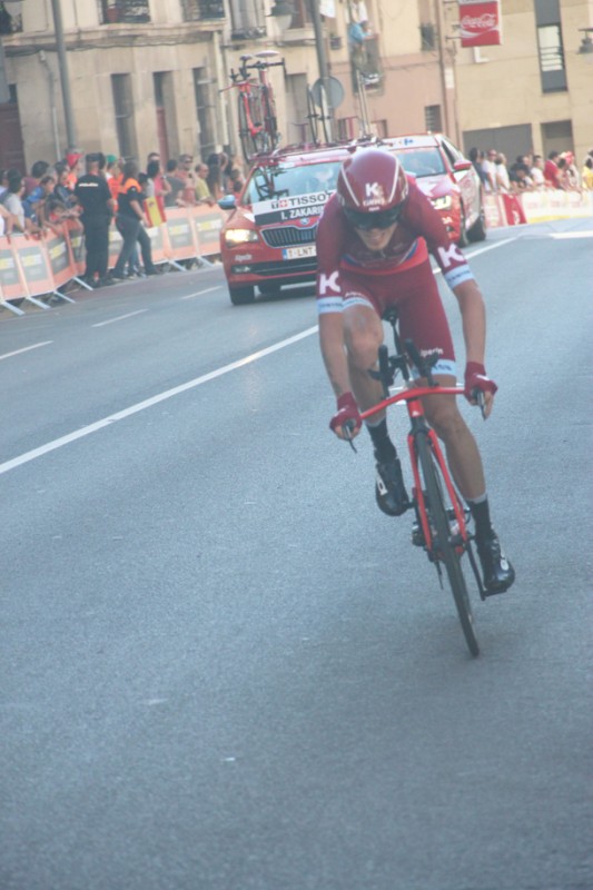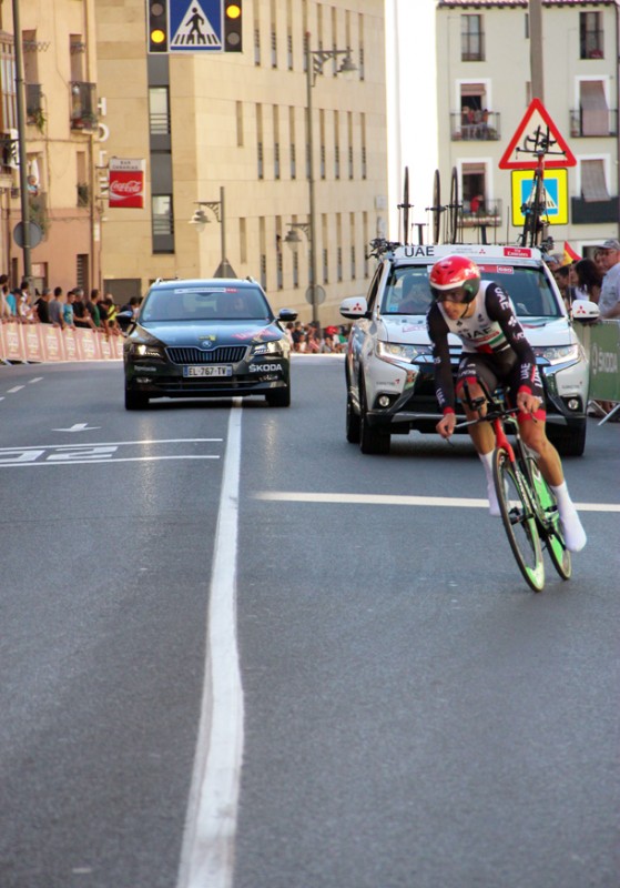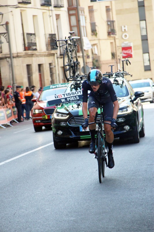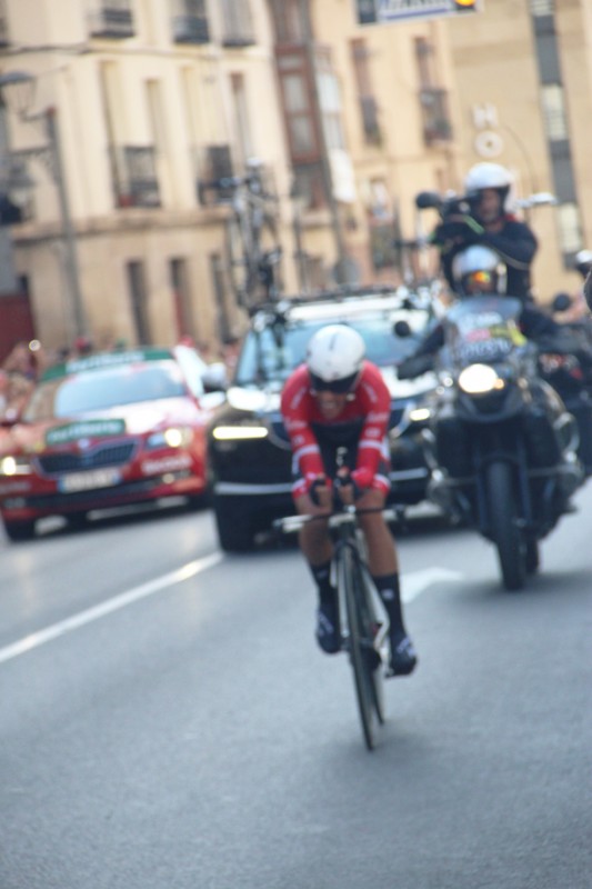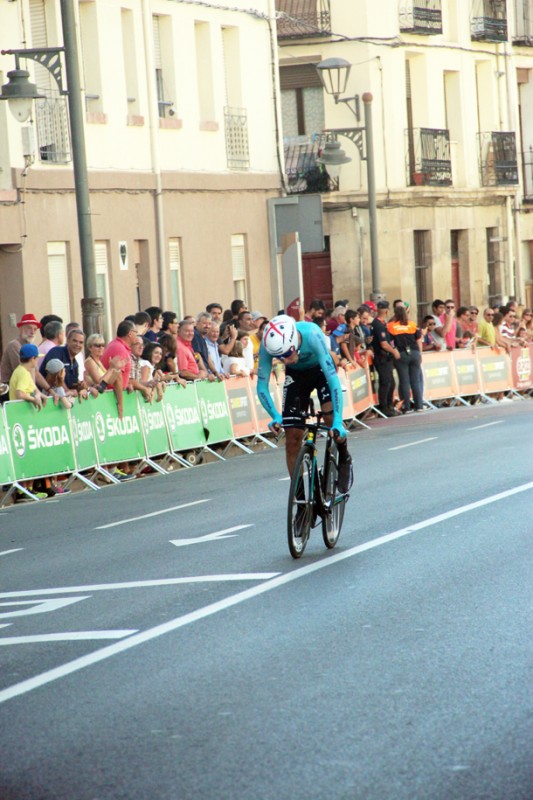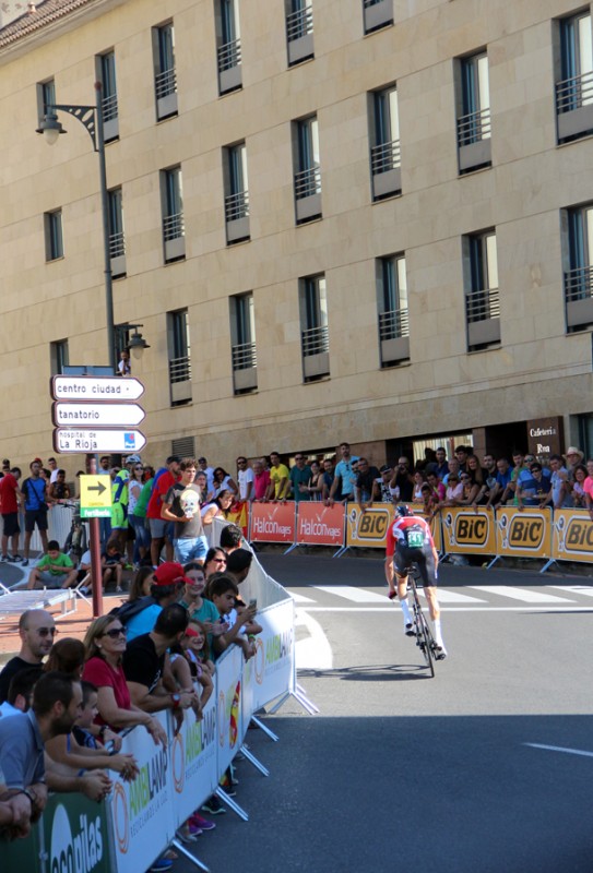 El ciclista británico del equipo SKy, Chris Froome, venció en la etapa contrarreloj de Logroño y afianzó su liderato antes de enfilar los últimos cinco días de carrera. Aún así, La Vuelta no está decidida a falta de etapas de gran dificultad, con llegadas en Los Machucos y el Angliru. Junto a Froome en la contrarreloj de 42 kilometros de Logroño destacaron el holandés Wilko Kelderman, el italiano Nibali y Alberto Contador. Tampoco lo hicieron nada mal el ruso Ilnur Zakarin y el holades Poels. Peor les fueron las cosas a Chaves, López, Aru y David de la Cruz. Ahora, Froome aventaja en 1 minuto y 58 segundos a Nibali; tres minutos y siete segundos a Kelderman y Zakarin; y 4 minutos y 58 segundos a Alberto Contador. La galería de imágenes pretende ser un resumen de la etapa desde el último kilómetro, desde la rampa de Avenida de Viana./J.M.