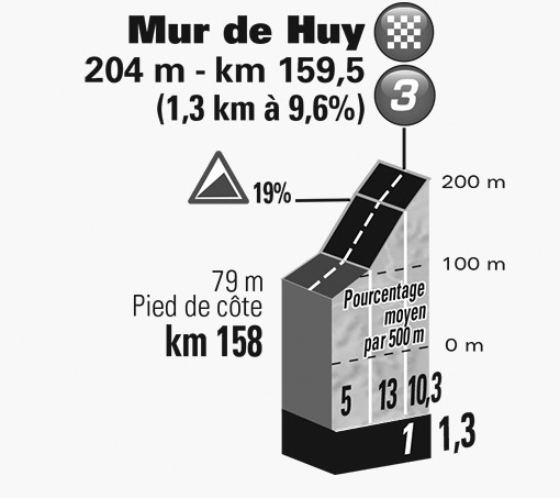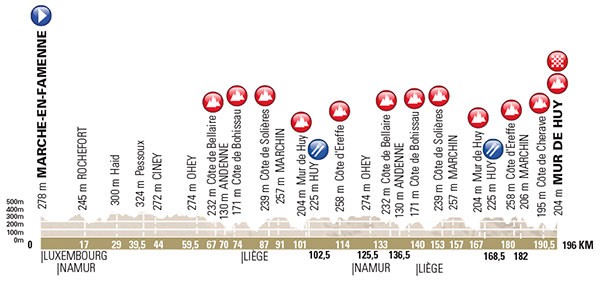 Huy, el municipio, se sitúa en la provincia de Lieja, en la región francófona de Valonia. La Historia apunta sus primeras referencias en tiempos de los romanos a través de un asentamiento en la orilla derecha del río Mosa. A su vera, se convirtió en la Edad Media en uno de los más prósperos pueblos de la zona. Basaban su economía en la metalurgia, la elaboración de vino, la madera y las esculturas. Más tarde, en siglos XIII y XIV, la industria telar cobra enorme importancia en la ciudad, que se transformó en industria del papel en el XIX. Hoy en día, sus cerca de 20.000 habitantes viven gracias al turismo y a los productos basados en el estaño y, por supuesto, aman el deporte de la bicicleta y cada primavera, como todos los aficionados belgas, abarrotan las cunetas para disfrutar de las clásicas. Carreas de un día, picoteadas por un paisaje de pequeñas colinas, que son religión en Bélgica.Desde que Huy es el temido final de la Flecha ningún corredor sin cierto pedigrí han cruzado la meta en primera posición. Argentín, Furlan, Fodriest, Fignon, Verbrugge, Jalabert, Aerst, Astarloa, Rebelin, Evans, Valverde, Gilbert, Dani Moreno y Purito Rodriguez han obtenido la victoria en la colina. Históricamente, los ciclistas belgas dominan el palmarés de la Flecha Valona con 38 victorias –tan sólo 3 desde que Huy es meta-; les siguen los corredores italianos con 18 –sólo 5 desde Huy- y los franceses con 8 -1 desde 1985-; mientras que las seis victorias españolas se han producido todas desde que Huy es el final de la carrera. Un podio legendario que corona a cinco corredores en lo más alto con tres victorias cada uno, Marcel Kint, Eddy Merckx, Moreno Argentin, Davide Rebelin y Alejandro Valverde.