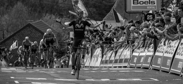 El corredor murciano ha ganado las dos últimas ediciones. El pasado año se situó en la primera posición del grupo al comenzar la ascensión final a Huy, ocupando el lateral derecho de la calzada. Desde esa posición incrementó el ritmo progresivamente, metro a metro, mientras vigilaba a sus rivales, antes de lanzar el rush final hasta cruzar la línea de llegada. Le siguieron Julian Alaphillippe y Michael Albasini, dos de los candidatos hoy, junto a Gilbert, Dani Martin, Gerrans, Mattews y Purito Rodríguez para hacerse con el triunfo. Si Valverde alcanza su cuarta victoria pasará a ocupar un lugar en la primera página de la Historia de la Flecha Valona. Huy comienza tendido -al menos en comparación con lo que está por llegar tan sólo unos metros más arriba- con una primer tramo que marca un desnivel del cinco por ciento, bruscamente las rampas se inclinan hasta el trece por ciento, antes de sortear la famosa curva al 26, y sortear los doscientos metros finales al 19 por ciento. Situado tras la línea de meta, observas como la figura del corredor que encabeza la hilera de ciclistas comieza a emerger, pieza a pieza, tras la loma de asfalto. Primero el casco, poco a poco el tronco y los brazos balanceandose sobre el manillar, después las piernas convertidas en piedras a punto de resquebrajarse, también la rueda delantera. Detrás, el segundo y el tercero bailando difuminados aún al fondo. Poco más de un kilómetro, sí, pero Huy hace tiempo que se transformó en una colina de leyenda./Javi Muro.
