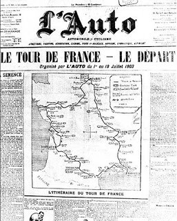 El primer Tour se celebró en 1903, entre el 1 y el 19 de junio. Fueron seis etapas y un recorrido total de 2.428 kilómetros. La organización corrió a cargo del diario francés L’Auto-Velo, predecesor de L’Équipe. Fue la primera gran carrera ciclista por etapas de la historia. Comparada con el Tour, La Vuelta o el Giro actuales contaba con un número muy reducido de etapas –ahora son 22 días de competición-, pero fueron mucho más largas. La distancia media fue de cuatrocientos kilómetros; hoy en día se sitúa entre los 170 y los 180. Además, los participantes no estaban obligados a tomar la salida en los seis parciales; eso sólo era requisito si se quería contar para la clasificación general.Desgranges había diseñado una carrera distribuida en cinco semanas, en concreto del 1 de junio al 5 de julio, y con objetivo claro de promocionar la nueva cabecera del periódico. Inscribirse costaba veinte francos franceses. Las fechas y las condiciones atrajeron a muy pocos ciclistas. Cuentan que una semana antes del inicio de la carrera tan sólo se contaba con quince participantes. Así que el promotor decidió renegociar las fechas y la bolsa de premios, llegando hasta los 20.000 francos y redujo el coste de inscripción a la mitad, garantizando además cinco francos por día a los primeros cincuenta corredores de la clasificación. Al final el día 1 de julio se presentaron en la línea de salida 60 ciclistas de los 79 apuntados. Maurice Garin era el gran favorito para la victoria final.