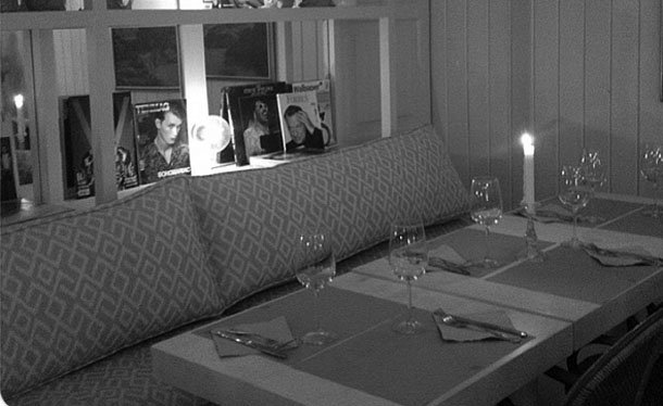 Una gran estantería es la protagonista del salón. Madera blanca, decorada con resvistas, libros, portadas de discos, y cactus, que dan un toque moderno al espacio. Todas las mesas cuentan con su candelabro, unos de cristal y otros de metal. Un gran sofá corredero junto a la estantería -Muy mullidito- enlaza los diferentes espacios. En las mesas los candelabros con las velas encendidas crean un ambiente tranquilo, romántico… especial. 'Dray Martina es de esos lugares que nos siguen sorprendiendo no sólo al estómago si no también a la vista. Estaba a tope y aun así se podía charlar y estar tranquilo.