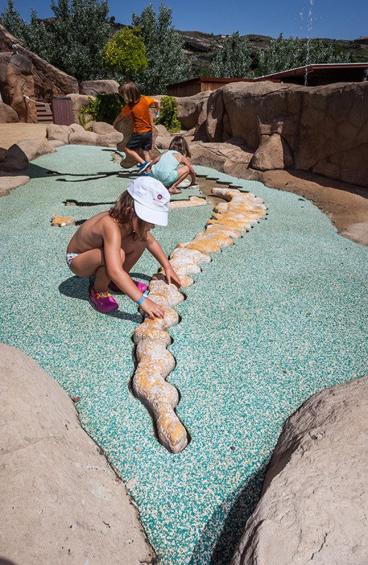 El Circuito Paleontológico es la siguiente parada. Y es que El Barranco Perdido acoge también un espacio que permite buscar fósiles en una excavación abierta. Hasta la zona se accede a través de un agradable paseo arbolado. Allí, los chavales identifican y clasifican, posteriormente, los hallazgos en el Laboratorio del Tiempo, sirviéndose de los últimos adelantos tecnológicos. El Laboratorio del Tiempo se muestra a modo de gran sala de juegos interactivos que giran alrededor de la paleontología. Una actividad dirigida a realizar en familia entre reproducciones a escala real de dos dinosaurios.