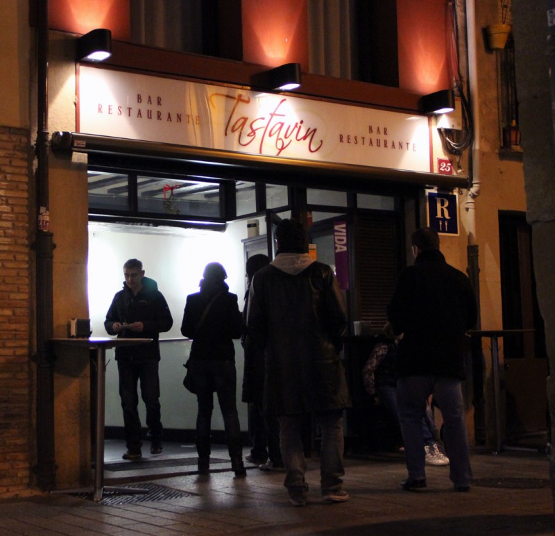 Desde el 'Tastavin', Pedro Cárcamo reconoce que es un enamorado de la calle San Juan. La define como una pequeña ciudad dentro de una más grande, con sus tiendas de alimentación, sus comercios, librerías y sus bares. Desde pequeño -cuando todos los domingos sus padres le llevaban de vermú por la 'San Juan'- sientió que se trataba de una calle especial. Así que cuendo decidió dar el paso hacia lo que considera su pasión tuvo claro que el 'Tastavin' se situaría alli. Ahora puede presumir de contar con una espectacular barra de pinchos y una carta de raciones -su última apuesta- relamente apetecible. Tiene una filosofía a la que no piensa renunciar que es la calidad que ofrece a sus clientes y que es también la seña de identidad de la 'San Juan', "aunque algunos -señala- últimamente se la quieran cargar". Su idea de lo que quiere que sea el 'Tastavin' se sustenta en su afán de innovar y variar de forma continua las cartas de pinchos y raciones. El Tastavin nunca será un bar de un sólo pincho", dice con orgullo.