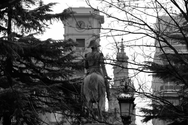 Muro del Carmen. Paseo del Espolón. Figura ecuestre de Espartero.