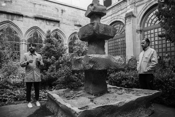 El claustro de Santa María de Palacio, uno de los espacios más mágicos de la cita, ya que habitualmente se encuentra cerrado al público, este año mostraba una pieza en forma de fuente -y es que todo claustro que se precie ha de albergar una-, realizada por el diseñador catalán Guillermo Santomà. Una reconstrucción a modo de elemento ficticio, que el diseñador recreó tras la última rehabilitación del claustro llevada a cabo en los años 80.