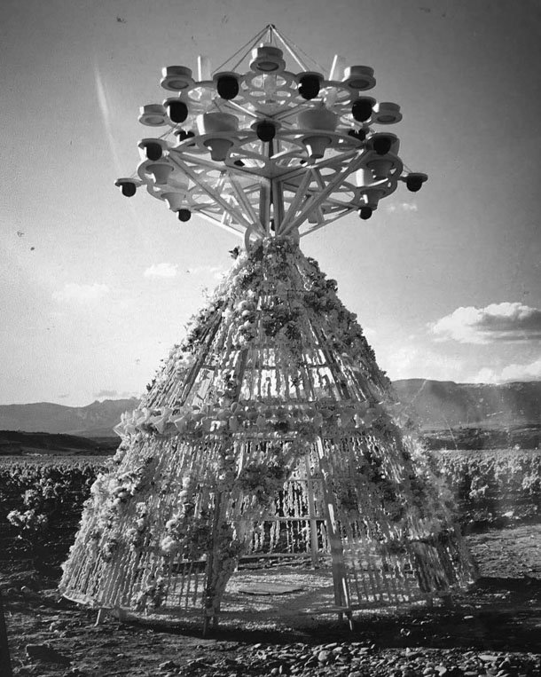 Por último, esta tercera edición de Concéntrico salió de los límites urbanos para llevar el escenario de una de sus obras a Viña Laciano, perteneciente a Bodegas LAN. Los encargados de llevar a cabo tan bucólica labor fueron el estudio Takk, quienes, a través de Picnic, crearon un espacio donde encontarse, charlar, comer y beber. Una estructura a modo de jaula con bebederos para pájaros y ornamentada con una gran variedad de flores y decoración vegetal y autóctona del lugar. Una enorme 'cabaña' en mitad de un oasis de paz, viñas e idílicos paisajes.