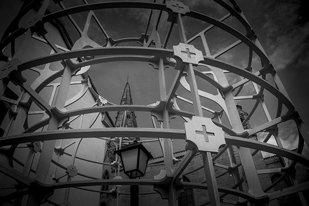 Levantan una nueva fachada en torno a las vidrieras del templo.