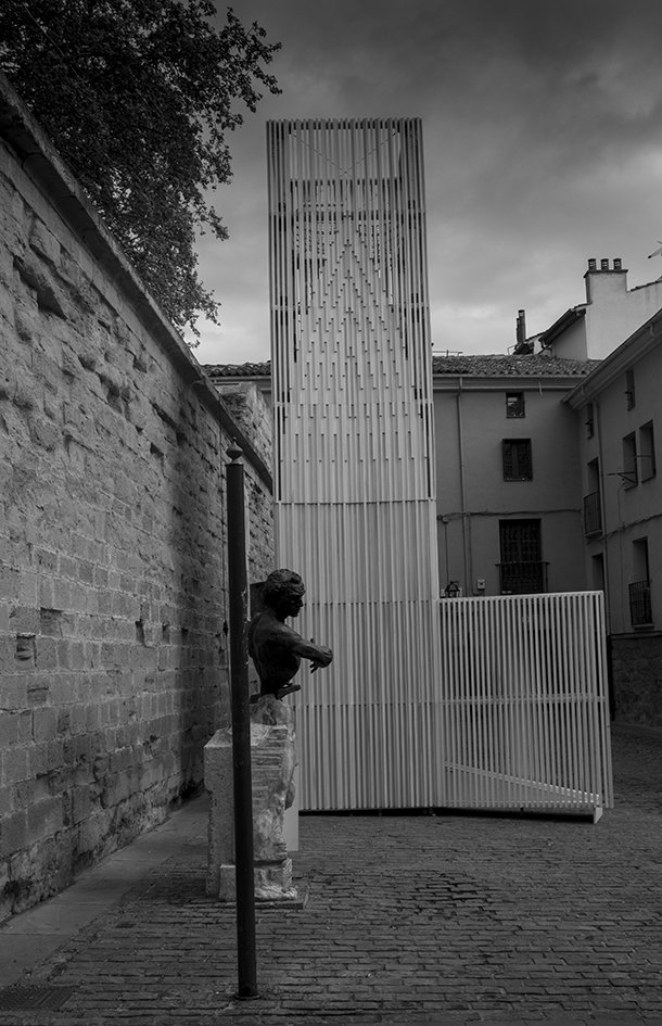 Su estructura se basa en la historia de Logroño como ciudad fortificada. La torre alberga un “periscopio virtual”, que animará a reflexionar sobre el espacio.