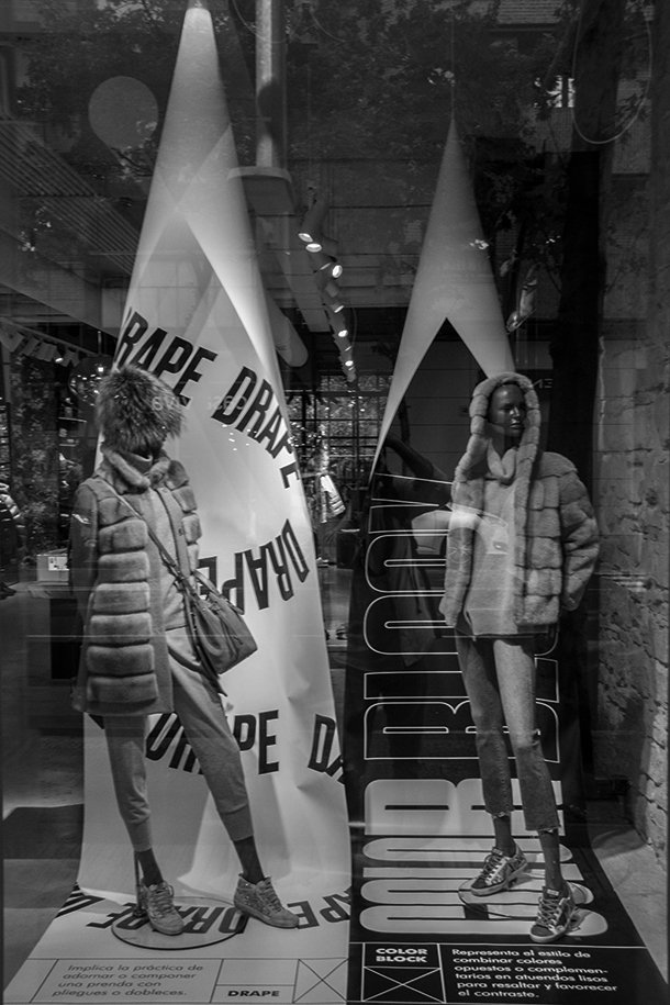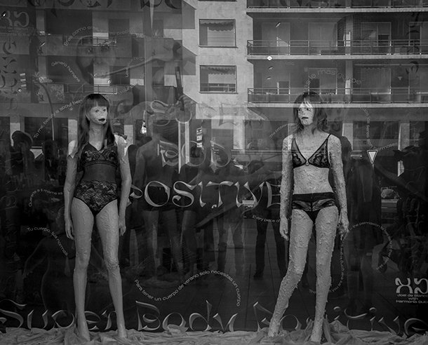 Sobre el damero que recorre la tienda, dos reinas dominan el escaparate tras dar jaque mate a los maniquíes de a diario. Desde el escaparate de Mandarina susurran que la partida es ahora más sugerente. Ciertamente lo es. La belleza divergente también usa lencería. Así lo demuestra ‘Super Body Positive’ y sus figurantes residentes en Anayvi. El humor también tiene su espacio en el diseño.