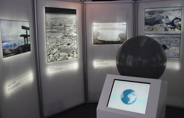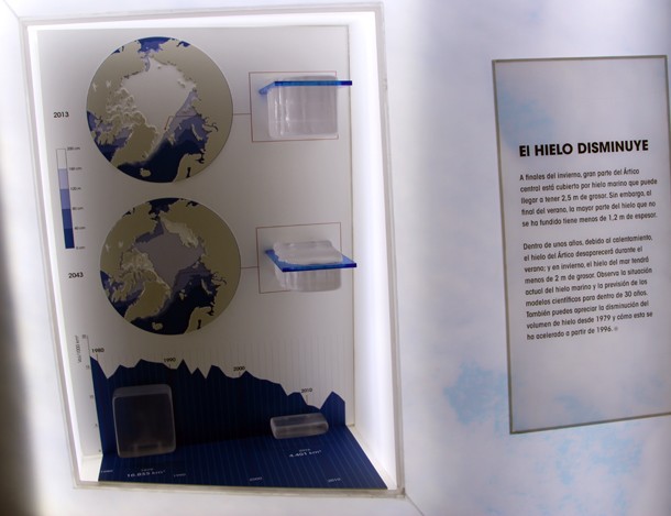 La exposición detalla el círculo vicioso, aumento de temperatura, mayor deshielo, cambio climático