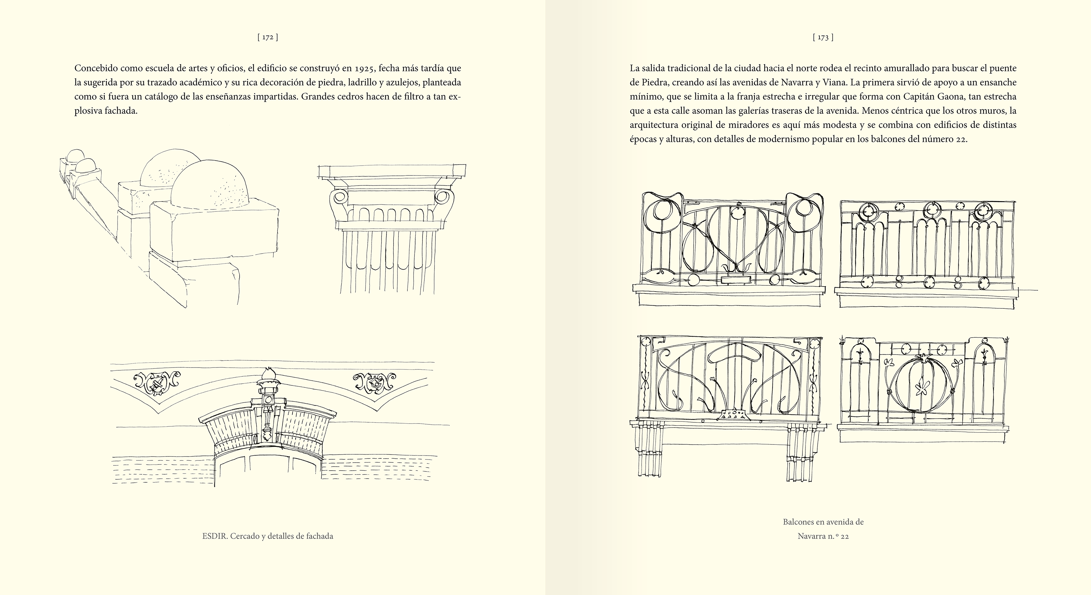 En las más de cuatrocientas ilustraciones que recoge el libro cabe de todo: planos, paisajes, edificios, esculturas, mobiliario urbano, detalles... "No quería caer -describe López-Araquistain- en reseñar exclusivamente los monumentos, ni siquiera hacer un catálogo de lo que considero de cierta calidad formal: más bien he recogido todo lo que me llamara la atención y sirviera para mi retrato".