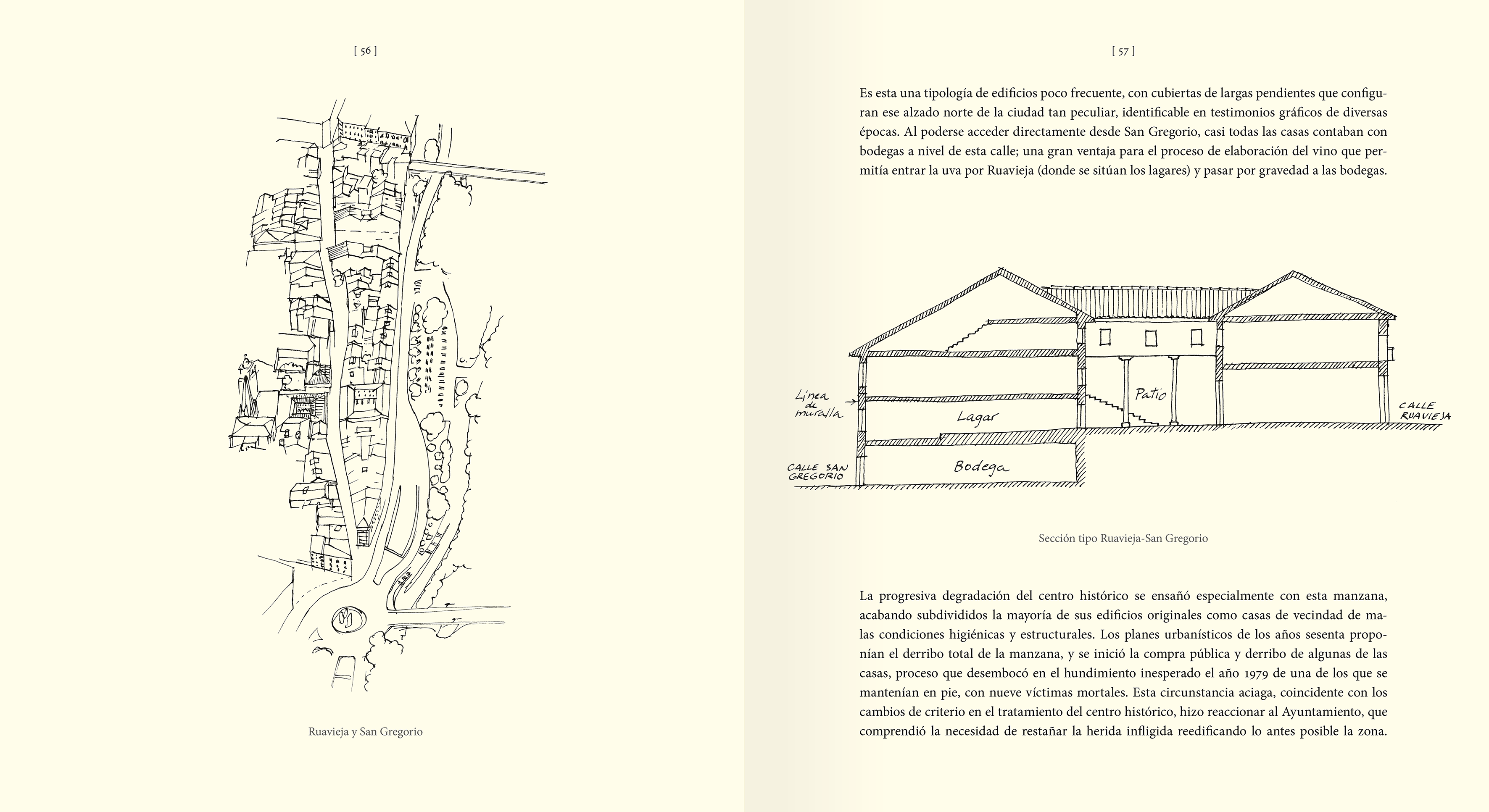En una primera parte el arquitecto logroñés dedica las páginas del libro a explicar la formación de la ciudad, haciendo un recorrido en el tiempo que sigue la evolución urbanística de Logroño. A continuación se desarrolla el contenido principal, una descripción por zonas que he dividido en cinco grandes apartados: 'El centro histórico', 'La primera corona' (ensanches iniciales), 'El crecimiento compacto' (el gran estirón de población de los años sesenta), 'La periferia' (los últimos barrios) y 'El territorio» (término municipal y núcleos de Varea y El Cortijo). "He optado por mantener la situación existente en el momento de redacción -apunta el autor- por lo que las referencias que se hacen en los textos a la avenida de Jorge Vigón, la calle Víctor Pradera y la plaza Alférez Provisional corresponden a las actuales Solidaridad, María Zambrano y Diversidad, respectivamente. Esto le da cierta dimensión de acta notarial en un momento inmediatamente anterior a la pandemia del coronavirus, acontecimiento que supone un brutal corte en la vida de Logroño y hace que el futuro sea más incierto todavía para las ciudades de tamaño medio".