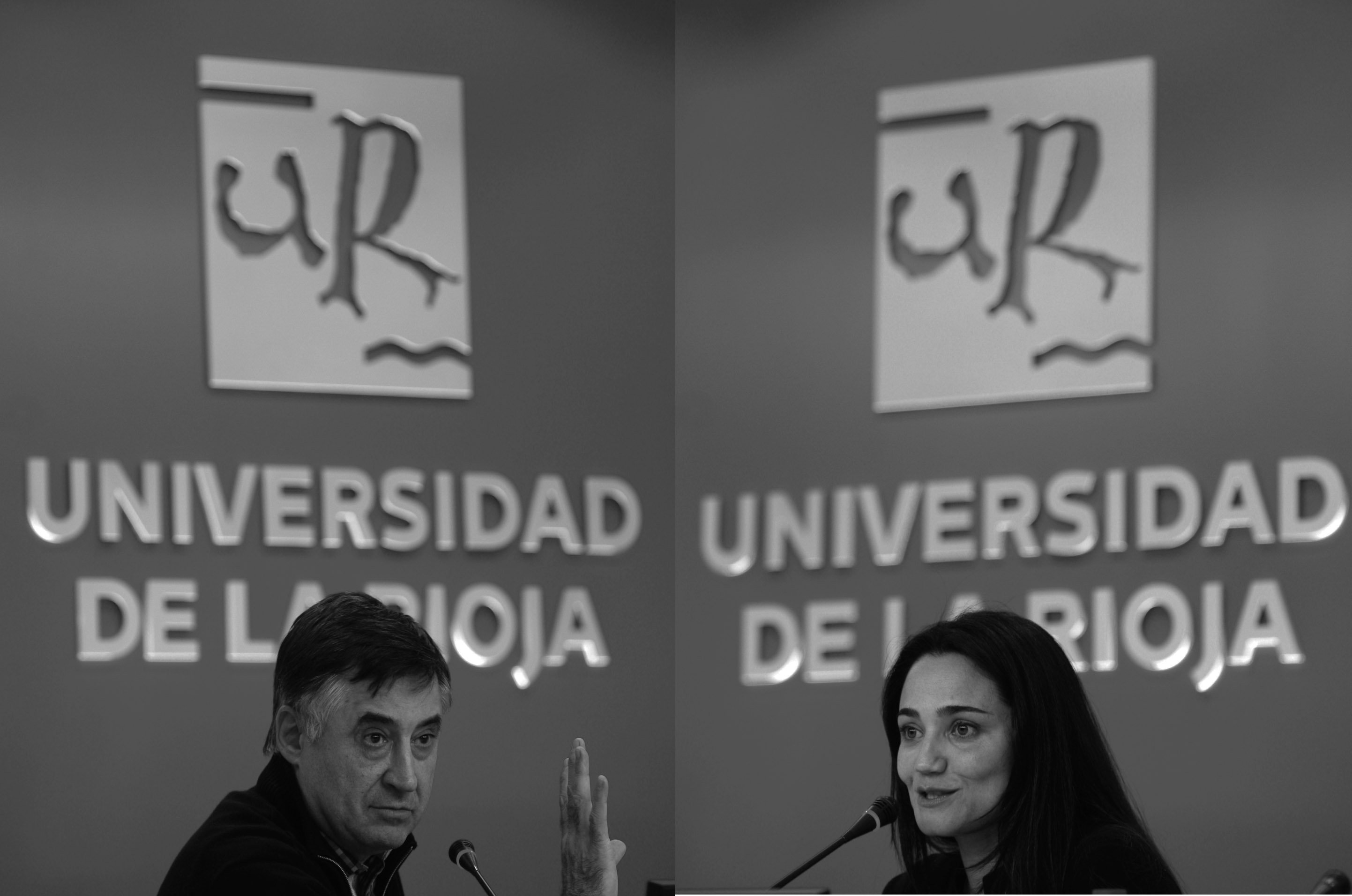 Desde la primera fila del Aula Magna del Edificio Quintiliano de la Universidad de La Rioja Gervasio Sánchez y Mayte Carrasco parecen atrincherados tras la mesa central. Tan sólo se distinguen sus cabezas camufladas entre los micrófonos. Bien pudieran estar parapetados mientras cubren uno de los conflictos bélicos en los que, a lo largo de los últimos años, han ejercido de forma brillante el periodismo. Si te sitúas butacas arriba sobre las escaleras del auditorio inclinado, los dos reporteros de guerra, en vez de empequeñecerse, emergen seguros de sí mismos y de lo que entienden por periodismo, por buen periodismo. Lejos de los temores de políticos esquivos, Gervasio y Mayte se muestran dispuestos a hablar de todo y a responder toda pregunta que se formule desde el graderío.