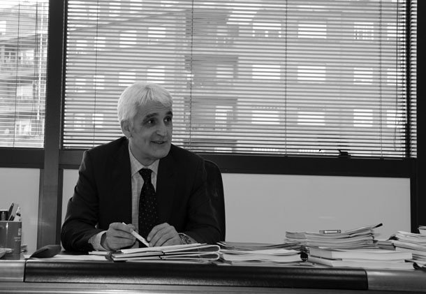 El rector de la Universidad de La Rioja, José Arnáez Vadillo, observa el desarrollo del programa de Cursos de Verano como un momento de máxima relación entre la Universidad y la ciudad. A través de los estores que protegen los ventales de su despacho se esbozan los edificios de viviendas cercanos. Arnáez Vadillo gira la mirada hacia la calle y apunta una conexión con la sociedad que debe de ser constante, y en permanente contacto con la actualidad. Desde ese convencimiento asegura que la institución que dirige tiene mucho que aportar en un momento de crisis como el que vivimos. Habla de ideas, de reflexión, de conocimiento, de investigación; en definitiva de todos esos elementos que pueden aportar un plus añadido. Un percepción que también suscribe al referirse al campo de las Humanidades: "Una sociedad sin visión cultural no sería una sociedad completa". Al analizar la realidad actual de la Universidad una palabra surge de inmediato en la conversación: "Financiación"./Javi Muro