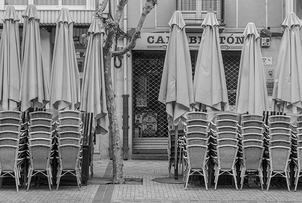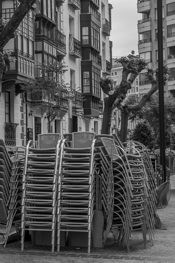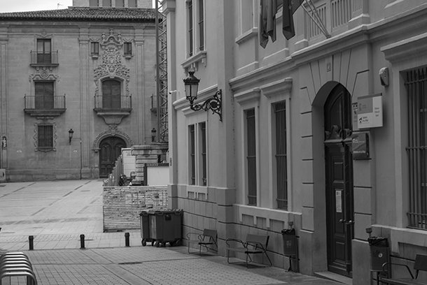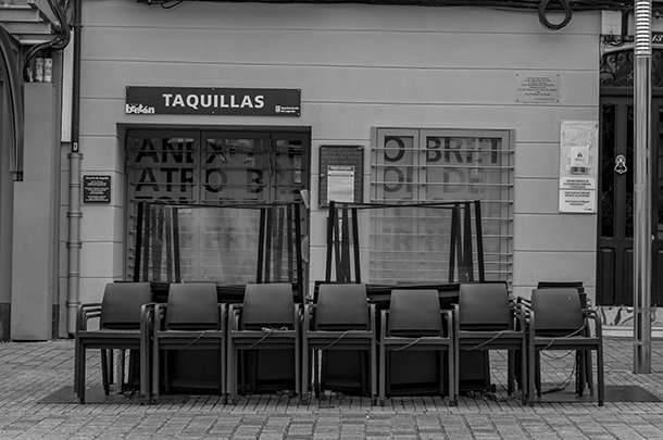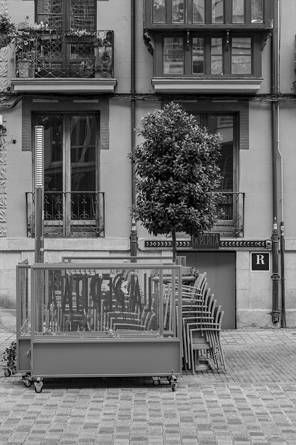 La ciudad luce extremadamente limpia, como sin usar. Las calles, las plazas, los rincones un millón de veces recorridos se muestran extraños, diferentes. Cada paso es un descubrimiento. Son las dos de la tarde y algunas personas regresan a sus hogares después de la jornada laboral. Pocas personas. Nadie mira a los ojos al otro al cruzarse. Avanzan con cautela, es la lógica respuesta a un borbotón de noticias que nunca quisieron conocer y que una vez escuchadas burbujean en la mente sin capacidad de dominio. No es paranoia, es otra cosa. Sentado en un banco de la calle Portales y flanqueado por tres bolsas rebosantes, un hombre -que bien puede haber visto horrores peores- descansa en su ruta de regreso a casa. “Hoy en el supermercado había más gente”, me cuenta desde la distancia. “A esta hora las calles están casi vacías; también por la tarde, pero unas horas antes aún se ve movimiento”. Todo a mi alrededor está vacío; las sillas de las terrazas forman torres de silencio donde no hace tanto las conversaciones se entrelazaban entre mesas, cafés y copas hasta bien entrada la madrugada. Ahora es el silencio quién ha implantado su señorío. También los gorriones. Parecen miles, millones, trinan gritando al unísono; su voz te acompaña calle a calle, paso a paso. Los pinturas y fotografías protagonistas de los museos y salas de exposciones duermen tras las cortinillas que ahora las esconden. Obras que no hace tanto provocaban admiraciones y que desde hace semanas esperan las miradas que les concedan la vida. Porque las obras de arte tienen vida, que conste. Es preciso salir del Casco Antiguo -la restauración y la cultura han echado la verja- para encontrar una frutería abierta, y un supermercado a cuya entrada cinco personas guardan fila a tres metres unos de otros. Dos agentes de Policía reparten mascarillas en la parada del autobús; el mismo lugar donde un hombre ha extraviado la mirada, quizá también él se ha perdido en el tiempo. Todos los días son el mismo día y ya son cuarenta y más. Nadie recorre el paseo central de la ciudad y las cabinas ya no tienen teléfonos. Dicen que este año no habrá fiestas patronales. ‘Se alquila’, ‘Se traspasa’ 'Disponible' se lee en unos cartelones al otro lado de la calle. No hay coches aparcados frente al portal, nunca había sucedido desde que resido en el edificio. Todo es distinto; idéntico y desconocido.