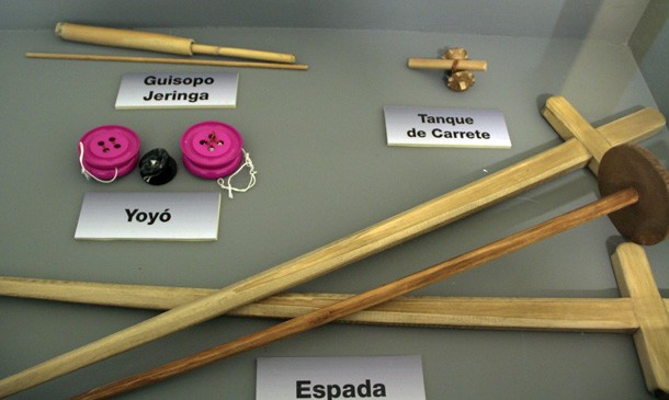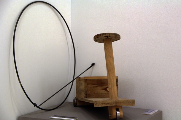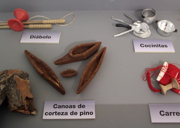 La habilidad y la creatividad se presentan en la muestra a través de yoyós confeccionados con enormes botones, diábolos, y canoas y espadas extraídas de la madera. También pueden verse arcos y flechas, matracas, tirachinas, bolos, mazos y tabletas. Nada que ver con las ‘tablets’ de hoy día, pero sin duda catalizadoras de la imaginación infantil de igual manera.