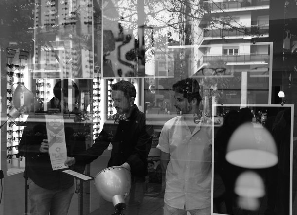 La calle Jorge Vigón será ya el escenario del recorrido por LOVISUAL hasta su conclusión. Giovanna Giampetruzzi y Maria Victoria Cresta, arquitectas, han encontrado en el Centro Óptico Capitol el escenario perfecto para desarrollar ‘Confiltro’. Con su propuesta quieren llevar a quienes se acerquen a la tienda a preguntarse ¿Qué nos permite ver las distintas realidades? ¿Cuánta luz penetra? ¿Qué color determina nuestro instante? Una iniciativa que parte del convencimiento de que “nuestro punto de vista se ve distorsionado al interponerse una barrera visual, un elemento filtrante de la realidad nos invita a jugar con lo que hay detrás”.