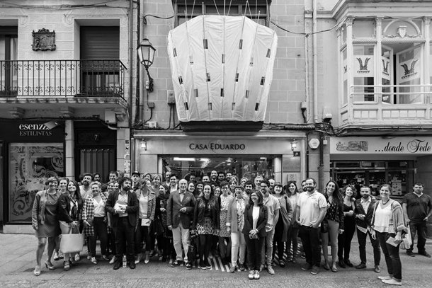 Son 22 comercios y 22 propuestas creativas, ya sean individuales o planteadas por equipos multidisciplinares, que recorren el Cascos Antiguo, así como algunas de las principales zonas comerciales de la ciudad. En Casa Eduardo, en la calle Capitán Gallarza, puedes encontrar todos y cada uno de productos típicos riojanos. Ahí, frente a la plaza de Abastos y en una de las calles más transitada del Casco Antiguo, ha intervenido Marina Fernández Ramos, arquitecta que trabaja en el estudio Subamarina. Un toldo de color amarillo resalta sobre el acceso a la tienda. Parece querer dar continuidad a la relación del comercio con las galerías de las viviendas que completan el edificio a lo alto. Explica Marina que ‘Toldo Decó’, como se denomina la intervención, “activa un nuevo espacio de relación entre la calle y el interior del establecimiento”. Toldo Decó está confeccionado a mano y consiste en un artefacto muy ligero y desmontable que se instala en la fachada del edificio. El toldo queda cosido a la balconada existente mediante cinchas textiles. Su construcción se realiza utilizando una estructura de cañas de bambú y un acabado de tela de cometas (tejido de Nylon), ligera e impermeable.
