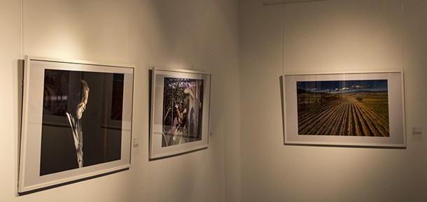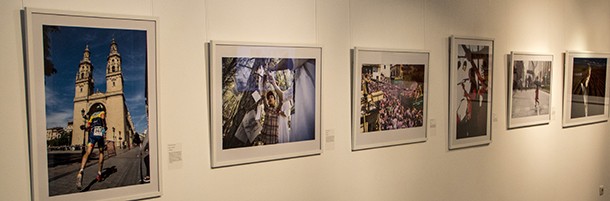Treinta fotografías impresas en gran formato a las que complementan otras 36, que digitalizadas pueden contemplarse a través de dos monitores. Imágenes que en ocasiones susurran el relato que atesoran y en otras lo gritan para que todo el mundo lo escuche. Imágenes que, por encima de todo, cuentan, y lo hacen desde la belleza de la composición, de los juegos de color, o del talento al controlar la luz y sus sombras. Son las historias que rememora ‘El Jardín de las flores negras’ en la batalla contra la violencia de género; es la ‘Avería’ -eléctrica- en el Monasterio de Valvanera; o el ‘Homenaje a la Unidad de Acción Rural de la Guardia Civil’, en su 40 aniversario. Es el rojo poderoso de los telones y butacas del Bretón envolviendo a su gerente, tras el anuncio de la reforma y ampliación del teatro; la evocación de las tradiciones en fiestas con el vino como protagonistas, o los atletas aficionados borrando kilómetros zancada a zancada hacia la meta en maratones y medias del Camino. Es el relato de un año en vistazos que imantan a las fotografías cuando te detienes frente a ellas. Un selecto anuario en imágenes en el que las autoridades regionales constatan impacientes la inversión japonesa en una empresa riojana; es el viñedo prolongando la tierra rojiza sobre la que se asienta hasta Monte Yerga; o el Parlamento Regional celebrando sus treinta años con el Convento de la Merced. Son las movilizaciones de los Bomberos de Logroño y los pasacalles de las fiestas de Arnedo, porque a veces es preciso demandar mejoras laborales y siempre disfrutar de las fiestas, de la felicidad, la alegría, que recrean, por ejemplo, los pasacalles en Arnedo. Es también la cultura, el retrato del artista concentrado un instante antes de la apertura de la muestra, Concéntrico y la transformación de la ciudad a través del diseño y la imaginación, el cine dialogando con el teatro en ‘Mujeres que no volverán a pasar hambre’ en Actual’ o la feria Sculto en la segunda planta del Mercado de San Blas. Es Rajoy, cuando aún no sospechaba que pronto dejaría de ser presidente, el Ebro desbordándose o el sol del atardecer en complicidad con el fotógrafo para remarcar la fuerza del colorido de la Semana Santa logroñesa.