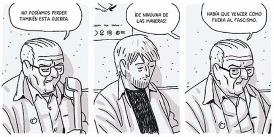 “El 14 de diciembre de 1944 –escribe Secundino Serrano en ‘La última gesta’-, en el curso de una patrulla en Alsacia, la vida de Campos entró en una nebulosa: historiadores y testigos no coinciden en sus noticias. Unos apuntan que murió en una emboscada (…) La mayoría sospecha que desertó (…) Un final de leyenda para un personaje mítico”. Roca lo reencuentra en una ciudad de Francia de cuyo nombre no quiere acordarse, un martes lluvioso y otoñal, nonagenario con muleta, dolencia crónica en el hígado y una memoria encerrada en una caja fuerte. Cual ladrón habilidoso, el dibujante mueve la cerradura con suavidad, hasta lograr que el viejo Campos revele sus secretos.