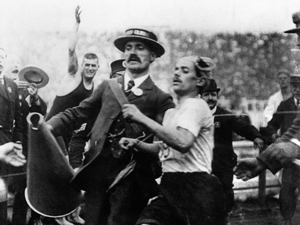 Y del mismo modo que llegué Zatopek desde Abascal y a Owens a trabés del 'Hijo del viento', descubrí la historia –triste historia- del italiano Dorando Pietri desde la victoria de Stefano Baldini en el maratón de Atenas en 2005. A Pietri lo descalificaron después de ganar el maratón olímpico de Londres 2008. Pietri fue eliminado después de llegar a cien metros de la meta extenuado y ser ayudado a levantarse tras caer varias veces al suelo. Aquel maratón pasó también a la historia por el incremento de la distancia, que creció hasta los 42 km y 195 m para hacer coincidir la meta con el balcón de la reina. Entonces James Bond no era el encargado de recoger a su Majestad y trasladarla al estadio; eran otros tiempos./Javi Muro