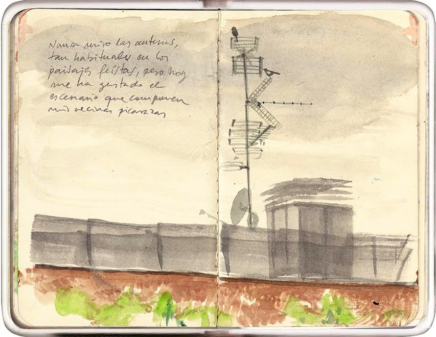 Nunca miro las antenas, tan habituales en los paisajes feístas, pero hoy me ha gustado es escenario que componen mis vecinas picarazas.