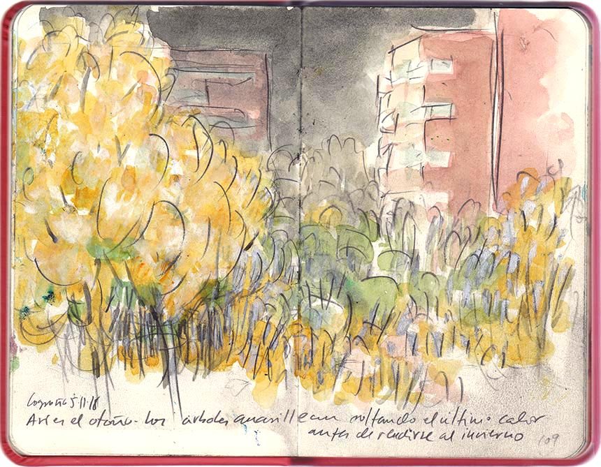 Así acaba el otoño: el color de los árboles despista a la noche, antes de entregarse al invierno.