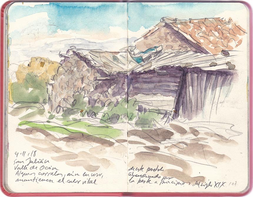 Los pueblos abandonados son como cadáveres. Pero ahora, alguien guarda aquí el ganado y le devuelve un poco de calor vital. San julián se vacío en el siglo XIX, a causa de la peste.